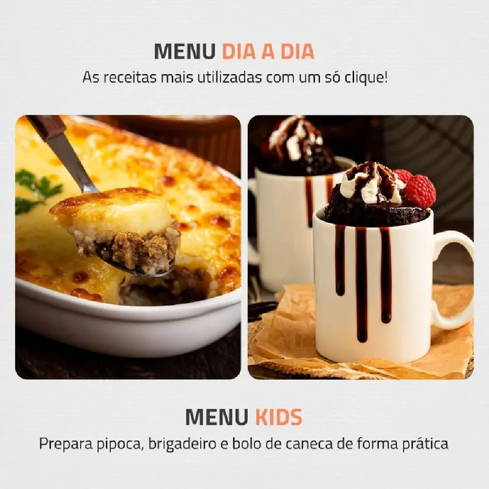 Função Manter Aquecido: mantém o seu prato aquecido até o momento de consumir.