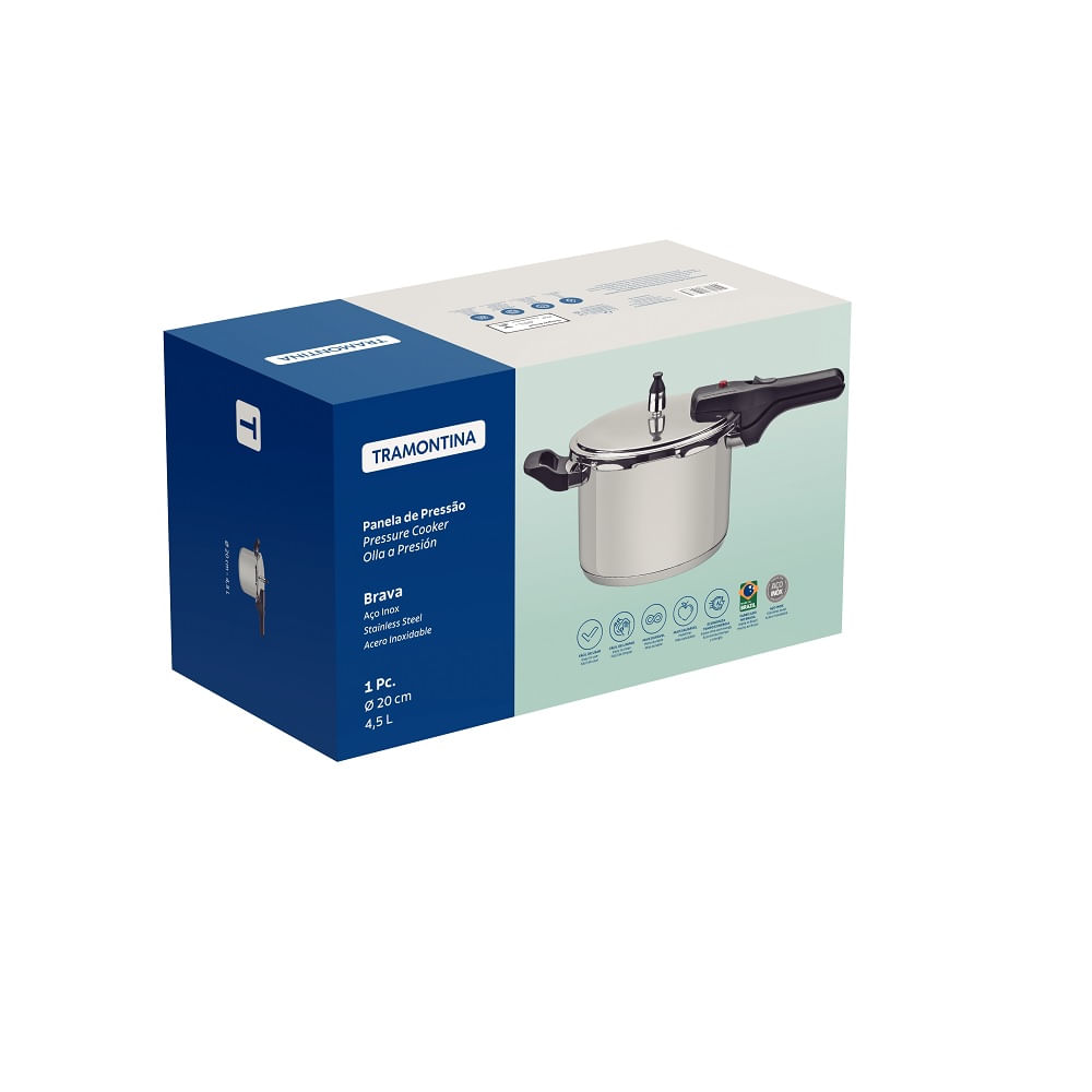 A Panela de Pressão Tramontina Brava em Aço Inox com Fundo Triplo possui a solução definitiva para simplificar suas experiências culinárias. Seja preparando feijão, lentilha, carne ou batatas, este utensílio de 20 cm e 4,5 L proporciona praticidade e qualidade incomparáveis à sua cozinha. Fabricada em aço inox, a panela é versátil, sendo compatível com fogões a gás, elétricos, vitrocerâmicos e por indução.