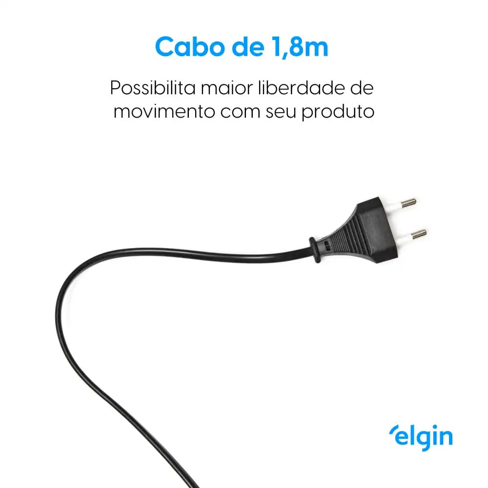 - Cabo giratório 360° de 1,8 metros para maior mobilidade