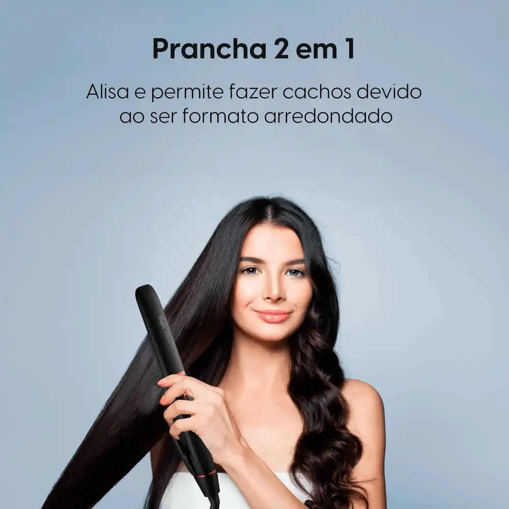 Equipado com tecnologia FHS (Fast Heating System), aquece rapidamente até 240°C, garantindo agilidade no uso. Suas placas flutuantes com revestimento cerâmico de Tourmaline Íon liberam íons negativos que selam as cutículas, reduzindo o frizz e aumentando a durabilidade do efeito liso. O termistor PTC controla a temperatura para evitar danos ao cabelo.