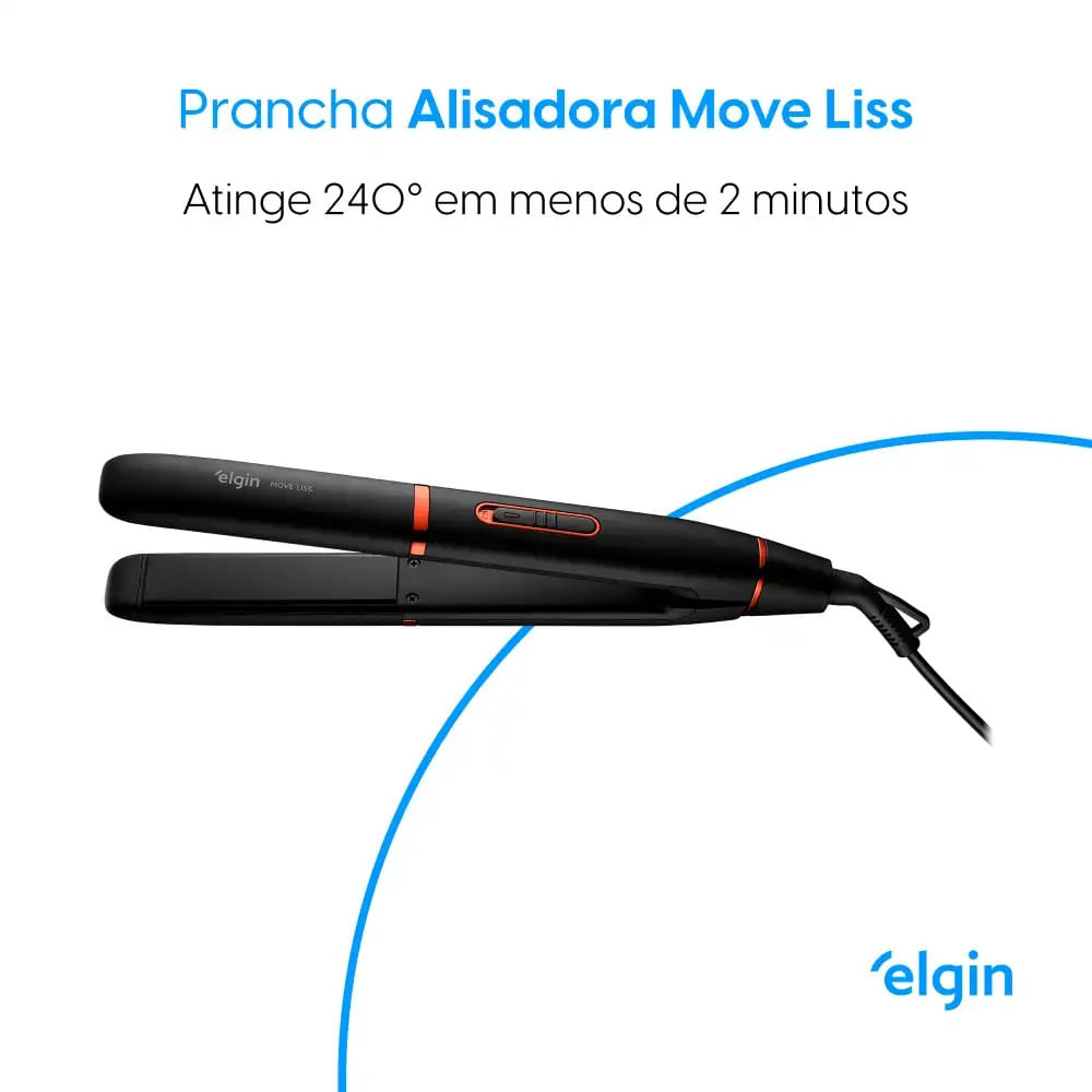 Prancha Alisadora Elgin Move Liss Preta – Bivolt é um aparelho profissional para alisamento capilar, indicado para todos os tipos de cabelo. Ideal para quem busca praticidade e eficiência no cuidado diário, ela ajuda a eliminar o frizz, proporcionando fios lisos, macios e com brilho intenso.
