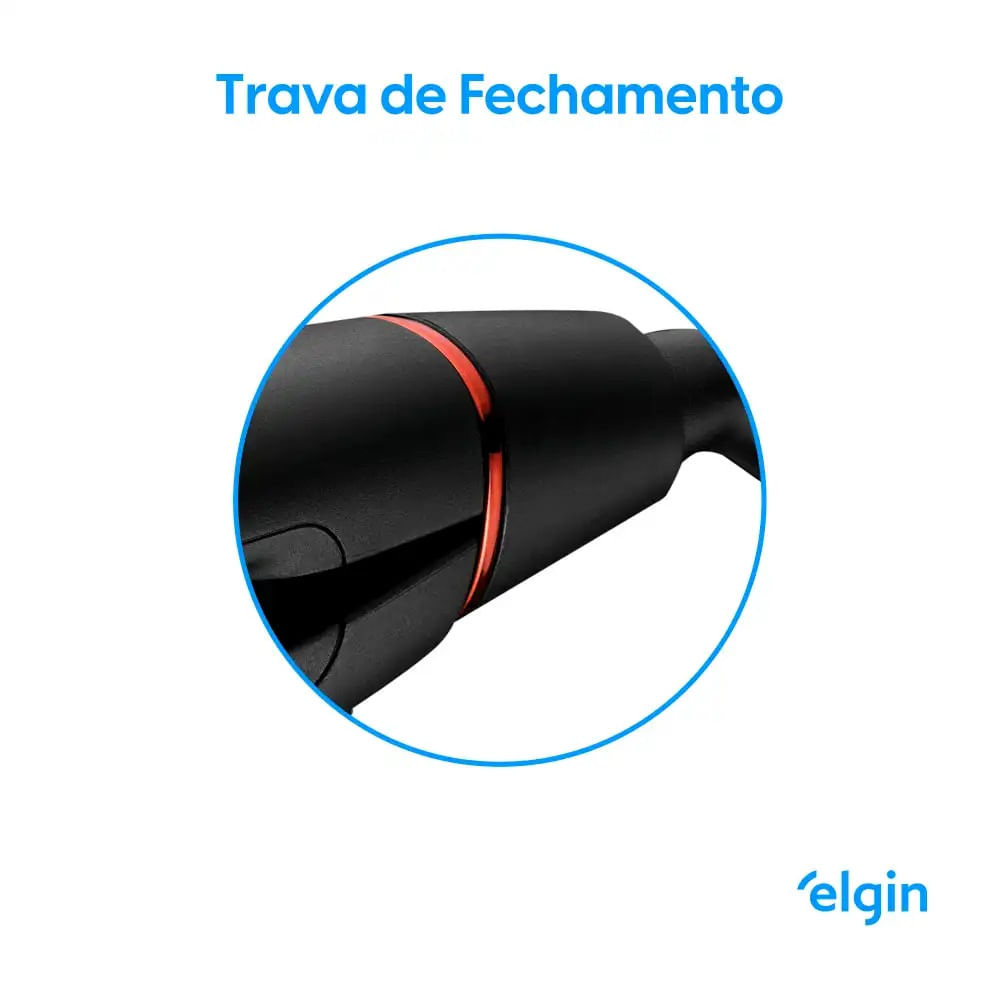 A experiência de uso é confortável e segura, com empunhadura ergonômica, cabo giratório 360° de 1,8 metros para maior liberdade de movimento e trava de fechamento para armazenamento prático. O duplo isolamento elétrico oferece proteção extra durante o manuseio.