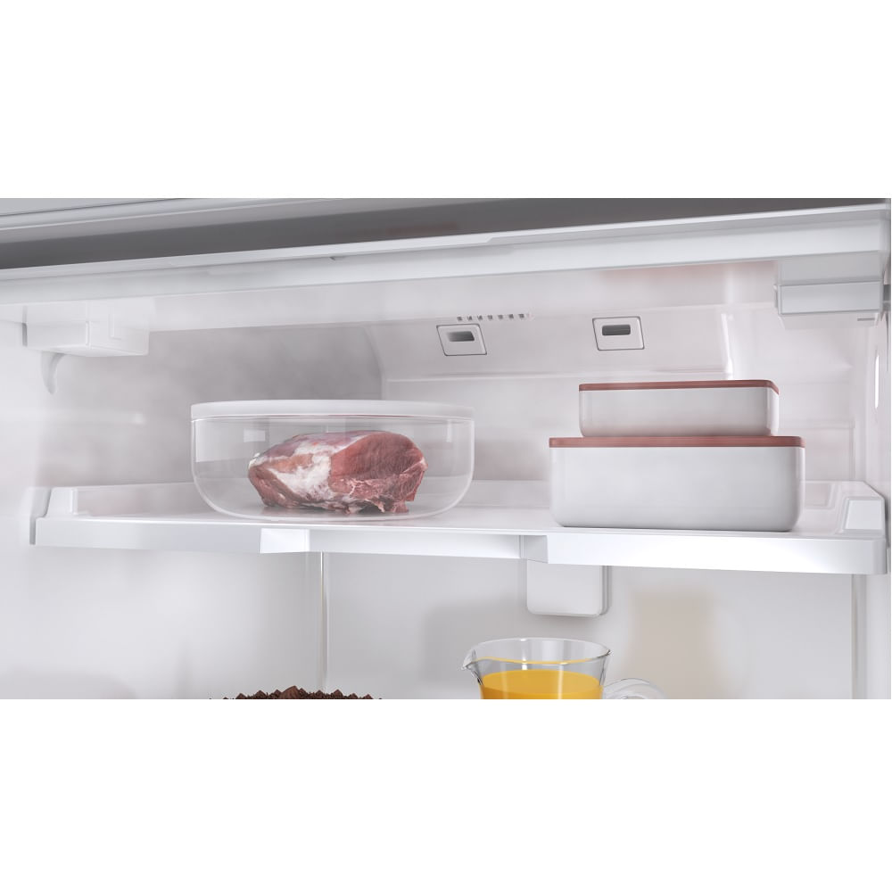 O Refrigerador Brastemp 400 Litros Frost Free Duplex com Freeze Control Inox BRM54 – 220 Volts possui o exclusivo compartimento Freeze Control, que conserva carnes por até 5 dias sem congelar e deixa bebidas, laticínios na temperatura ideal.