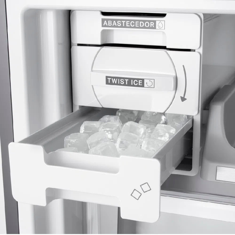 Abastecedor de água independente, não deixa a água cair e desenforma o gelo com apenas um giro.