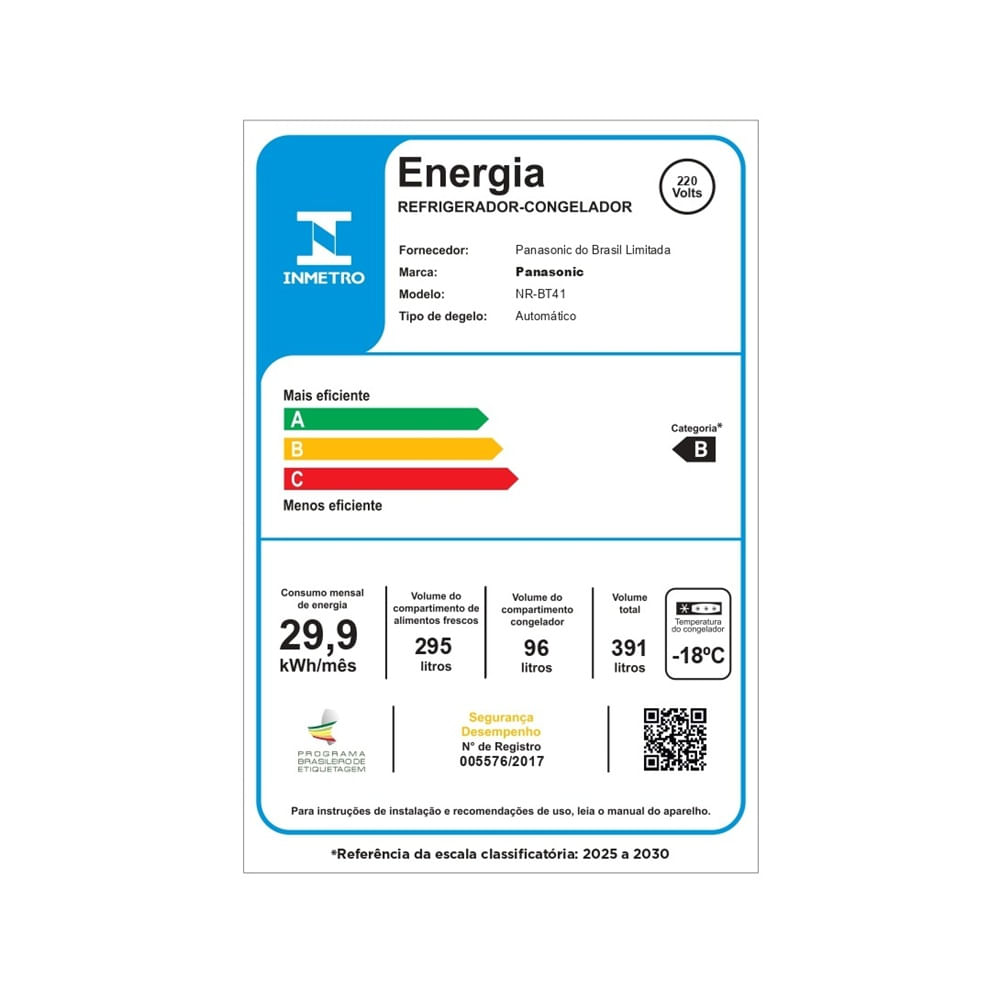 As geladeiras Panasonic têm menor consumo de energia, além de trazer uma economia de mais de 30% refletida na conta de luz.