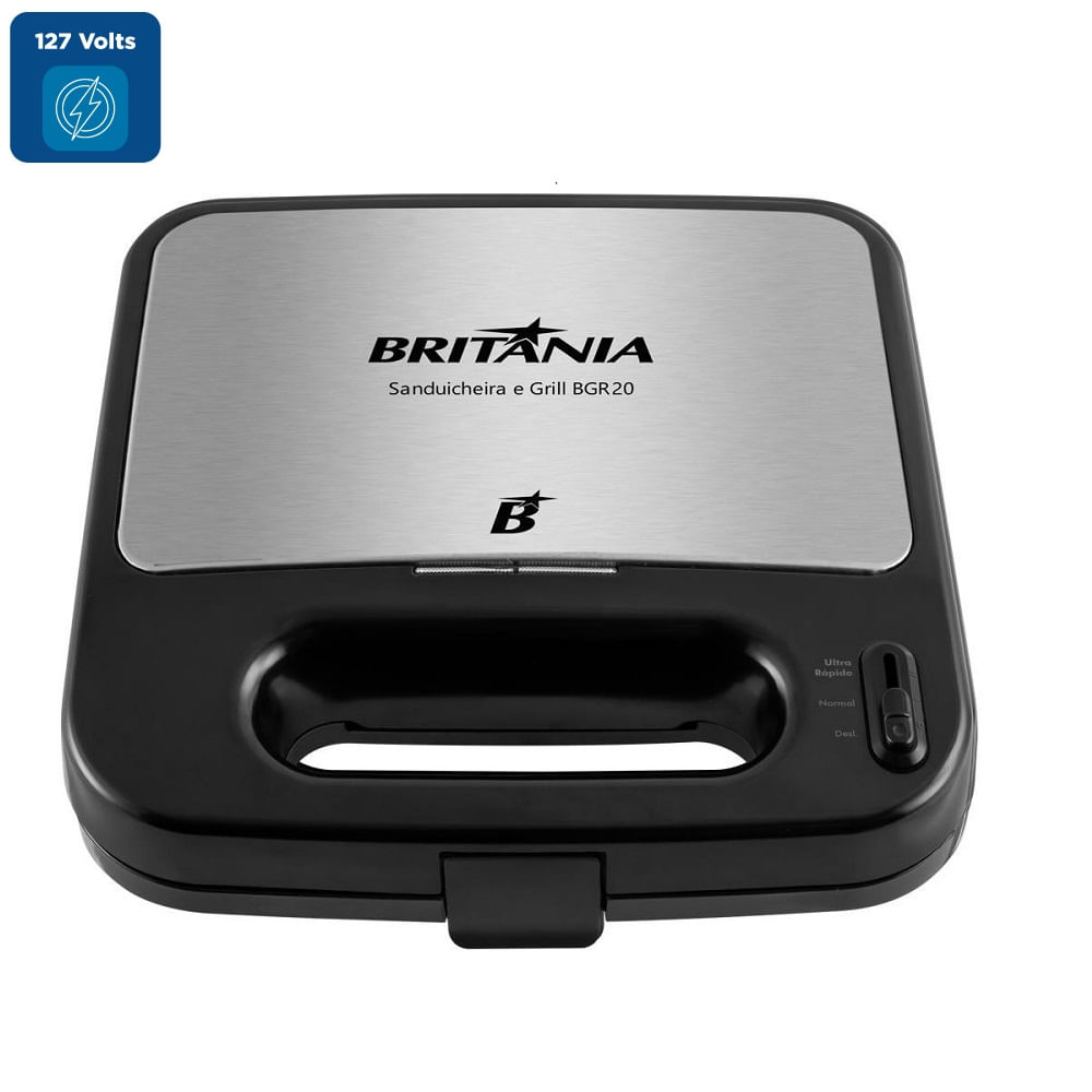 Sanduicheira e Grill Britânia Antiaderente Preta BGR20 – 127 Volts