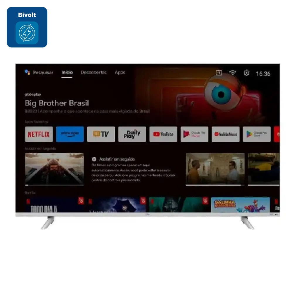 Sem falar que a Smart Tv Philco conta ainda com Inteligência Artificial Google Assistente que permite interagir com a TV através de comandos por voz. Aproveite um mundo de entretenimento e tenha acesso rápido e fácil aos principais serviços de streaming, como Youtube, Netflix, Globoplay e Prime Video.