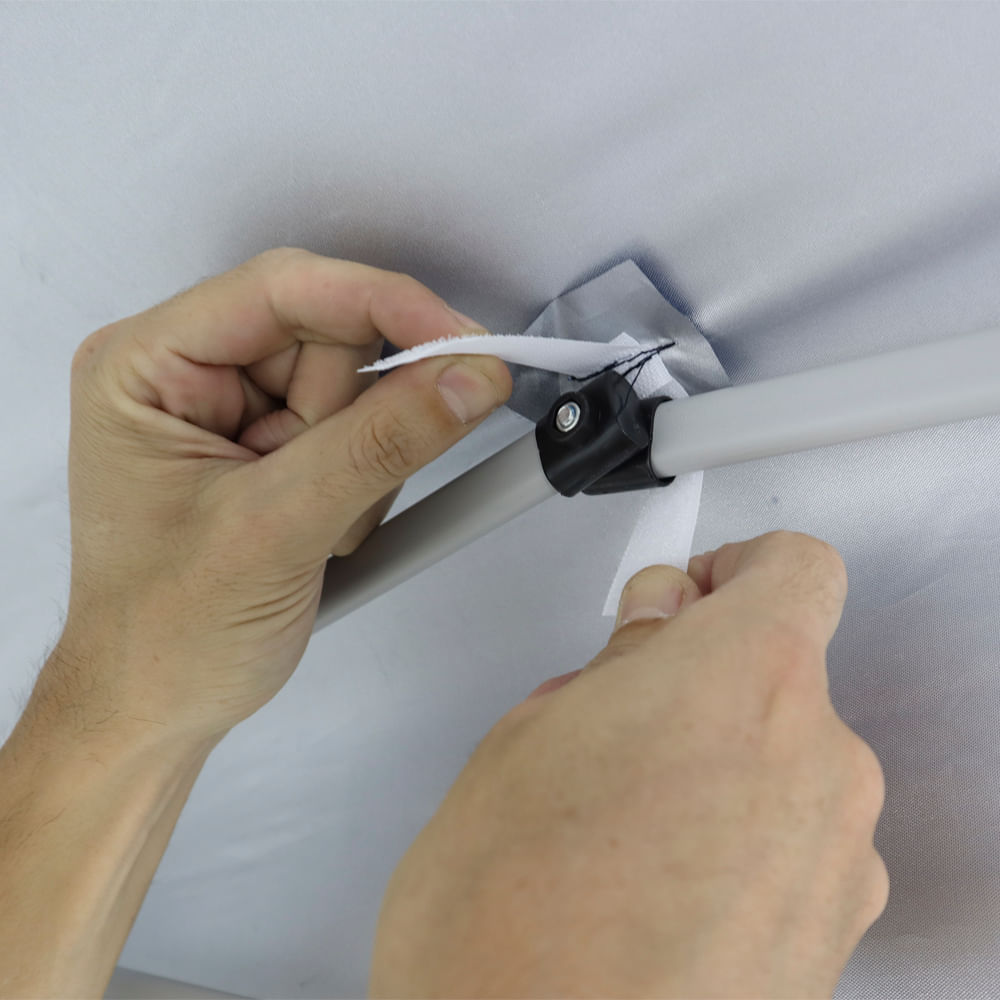 A Tenda Gazebo Bel Alumínio Dobravel 3m x 3m azul possui cobertura em Oxford com PVC, acompanha bolsa para transporte e conta com pés telescópicos com 4 posições de altura e base com furos para fixação em solo firme. Sistema Safe Lock para montagem segura, FPS 60 e estrutura articulada.